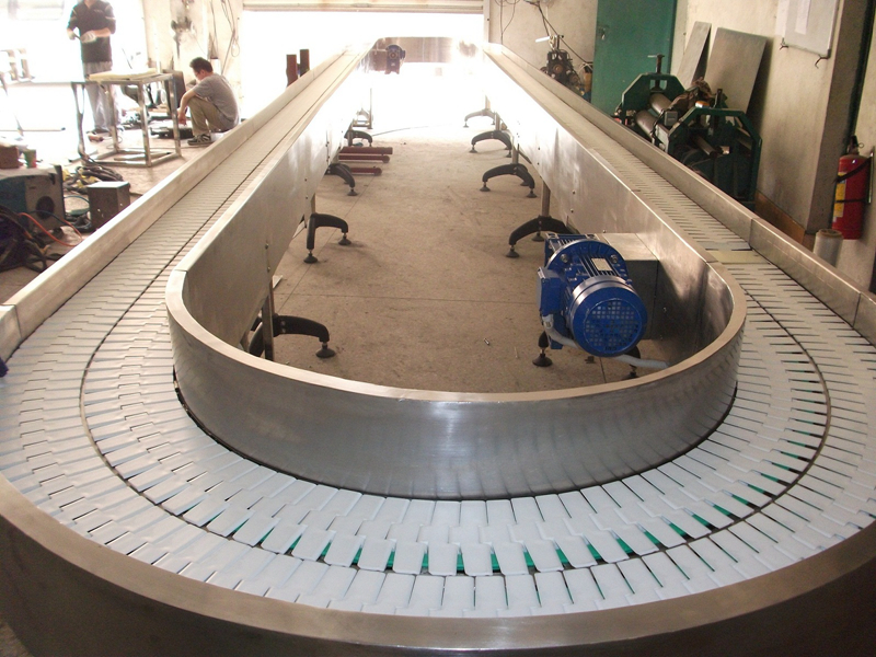 (3)一般要求輸送機空機開動,以免電機超負荷及不銹鋼鏈板打滑;停機前,除特殊情況外,應將不銹鋼鏈板上的物料全部卸完。